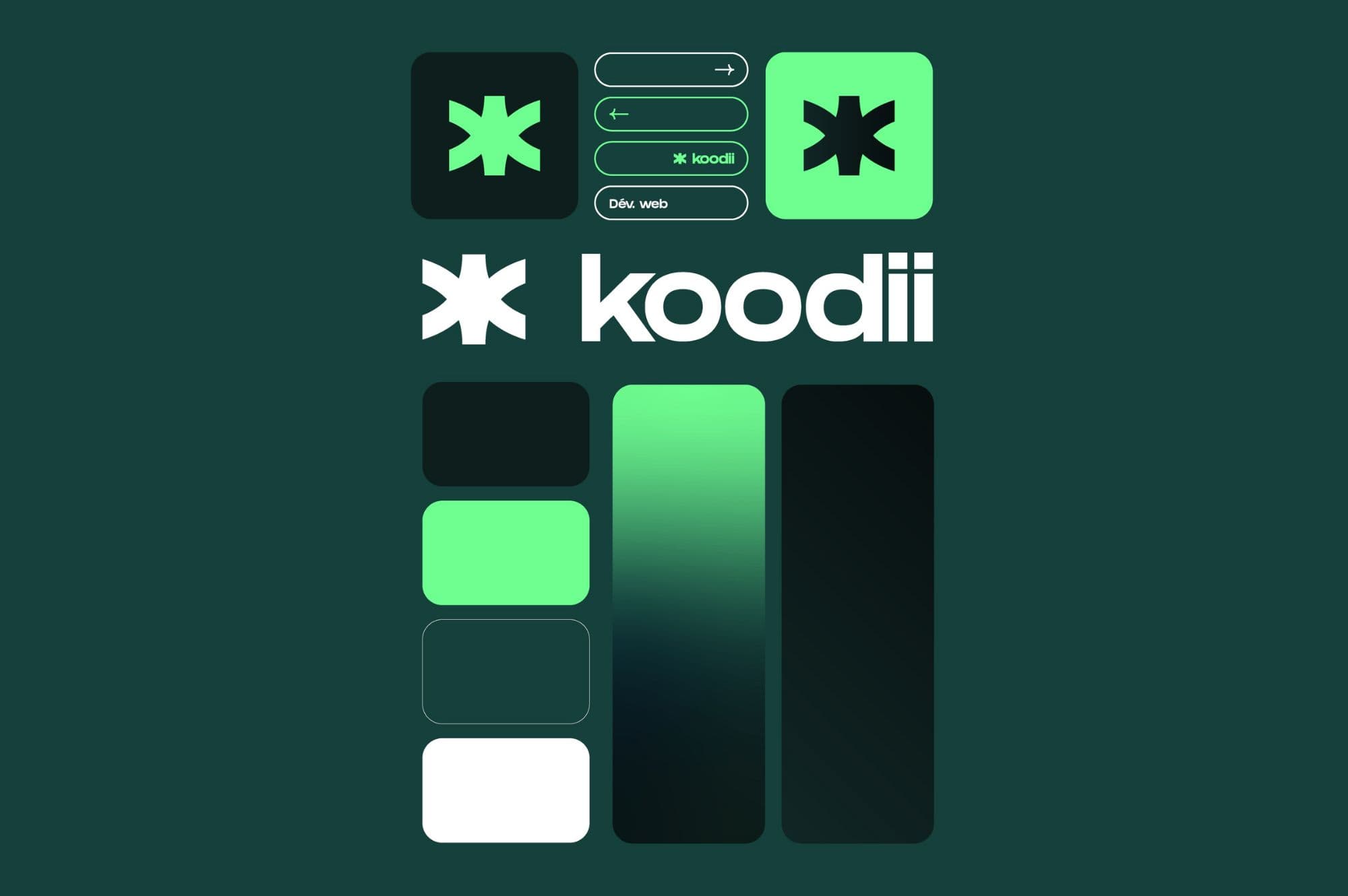 Nous avons accompagné KOODII dans la création de son identité visuelle, en concevant un univers graphique moderne et technologique, adapté à son secteur d’activité et à ses ambitions.