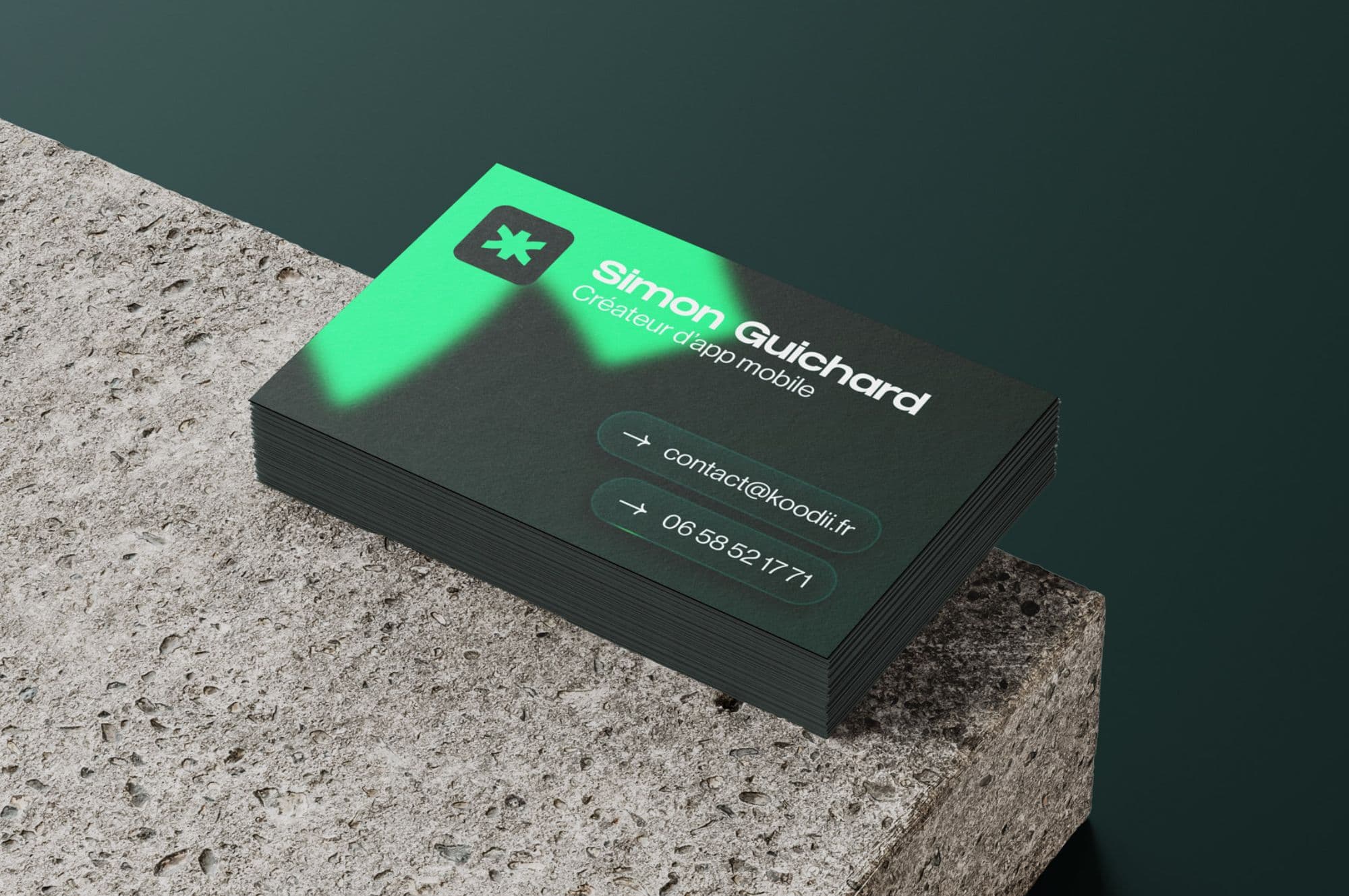 Concevoir des outils de communication adaptés à l’image de marque. Design de cartes de visite élégantes et professionnelles, permettant à KOODII de se présenter efficacement lors de ses rendez-vous. Mise en page respectant la charte graphique pour renforcer la cohérence visuelle.