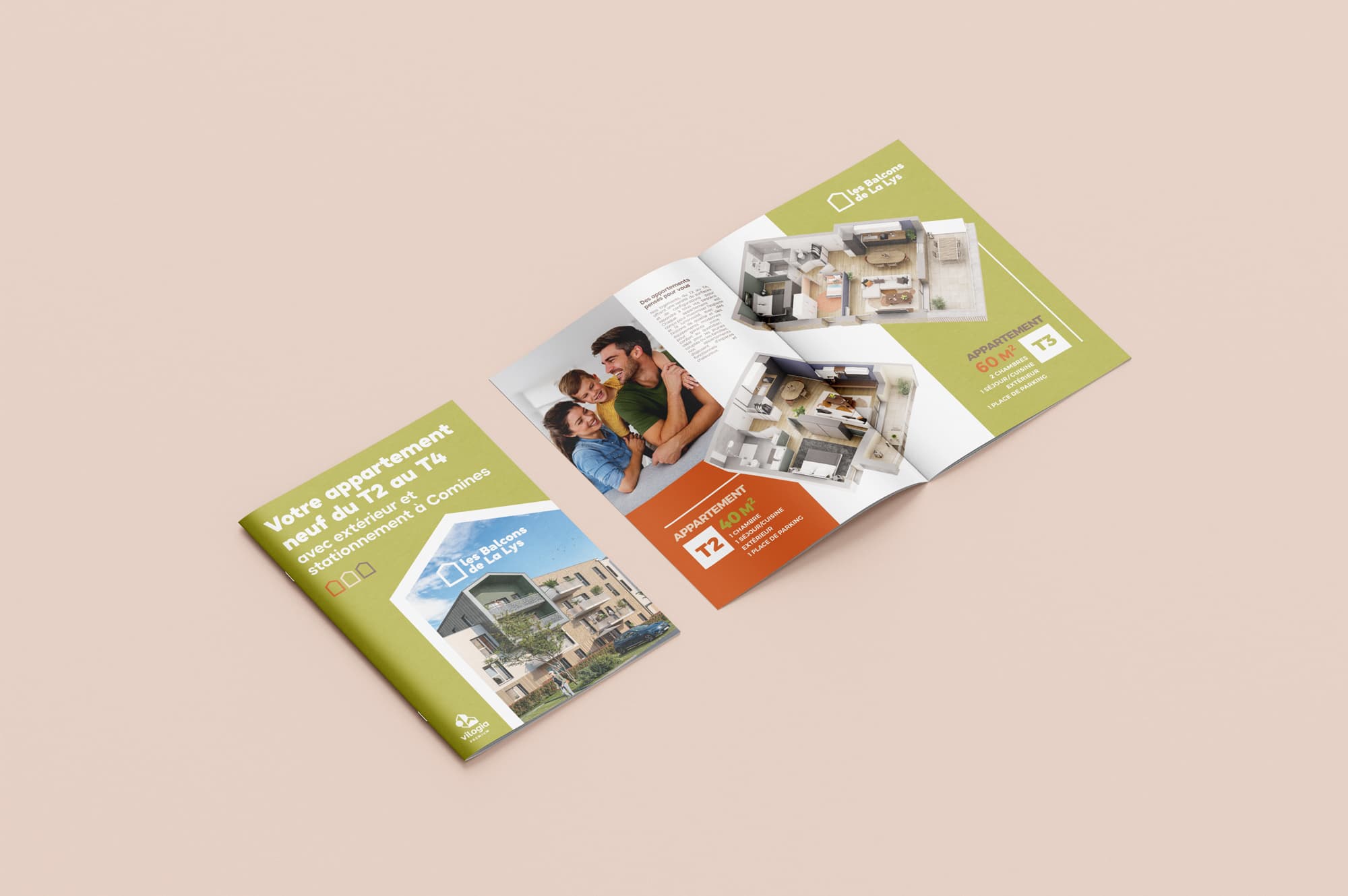 Des supports premium ont été créés pour valoriser le projet et accompagner les prospects : Brochures et flyers : présentation des plans, perspectives et détails des résidences. Affichage 4x3 : visibilité stratégique pour toucher un large public. Plaquette A5 : outil pour les commerciaux, intégrant maquettes 3D et visuels immersifs pour aider les futurs propriétaires à se projeter.