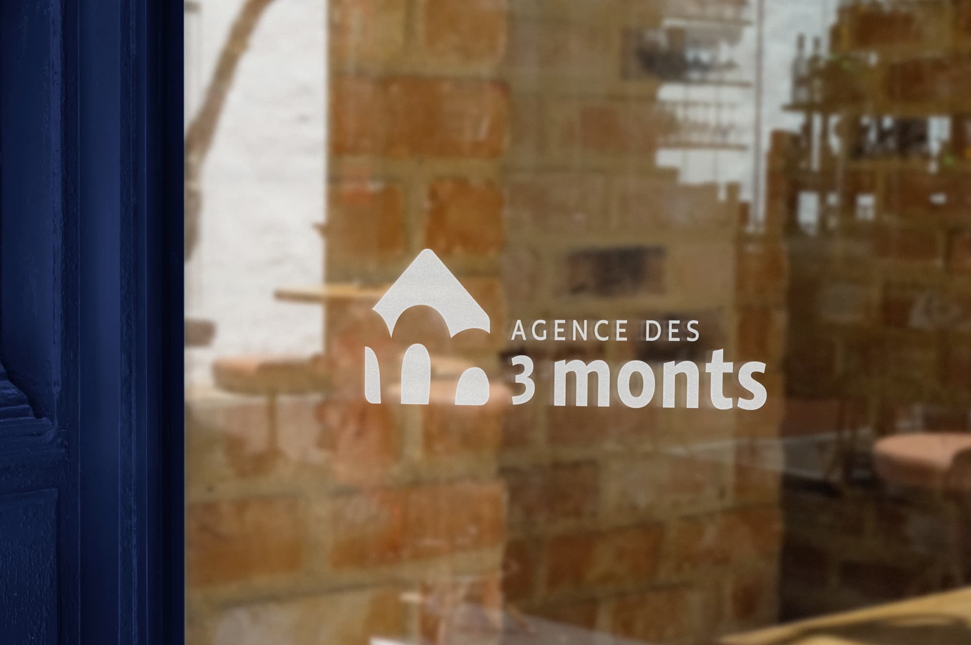 La typographie est ronde et sobre, créant ainsi une ambiance rassurante et accessible. La couleur bleu nuit ajoute une touche premium et qualitative, tout en véhiculant des valeurs de confiance et de sérénité. Le logo représente un symbole de maison, intégrant subtilement le chiffre 3 du nom "3 Monts", pour une identité forte et mémorable.